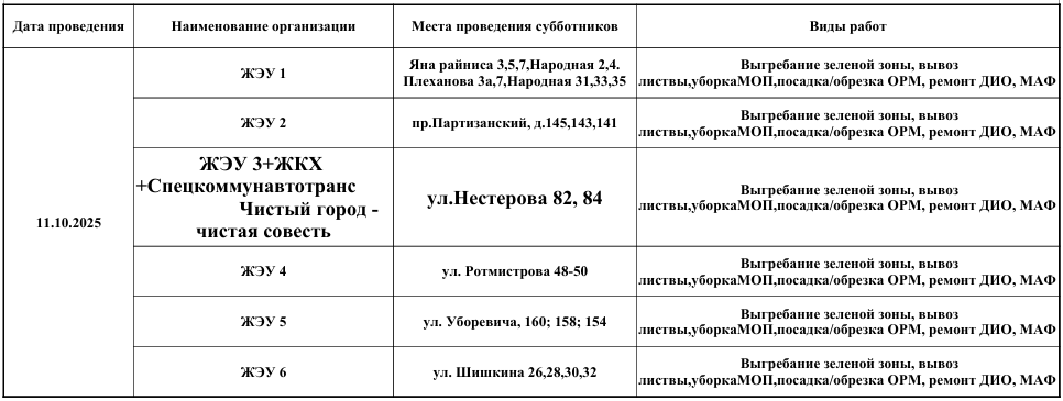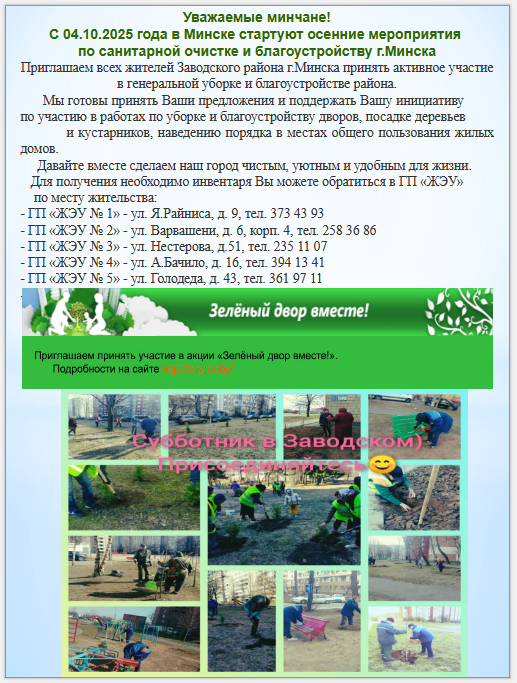 Осенние мероприятия по санитарной очистке и благоустройству г. Минска
